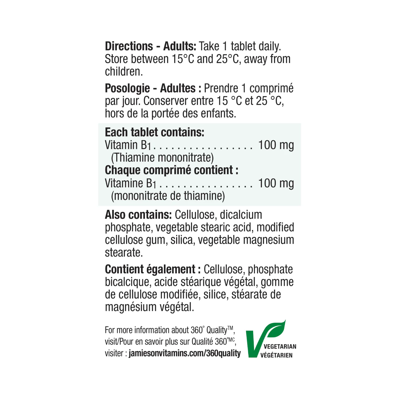 Jamieson - Vitamin B1 100mg | 100 Tablets