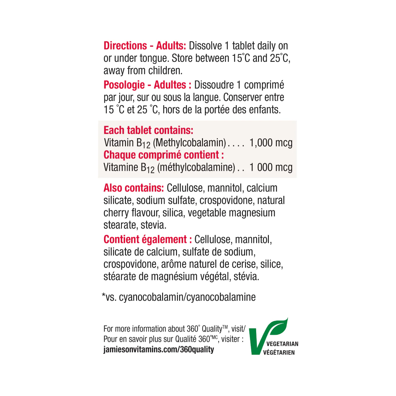 Faster acting. Naturally energizing. High potency, advanced formula made with methylcobalamin. Converts carbs, proteins and fats to energy. Delicious, fast-melting natural cherry flavour.