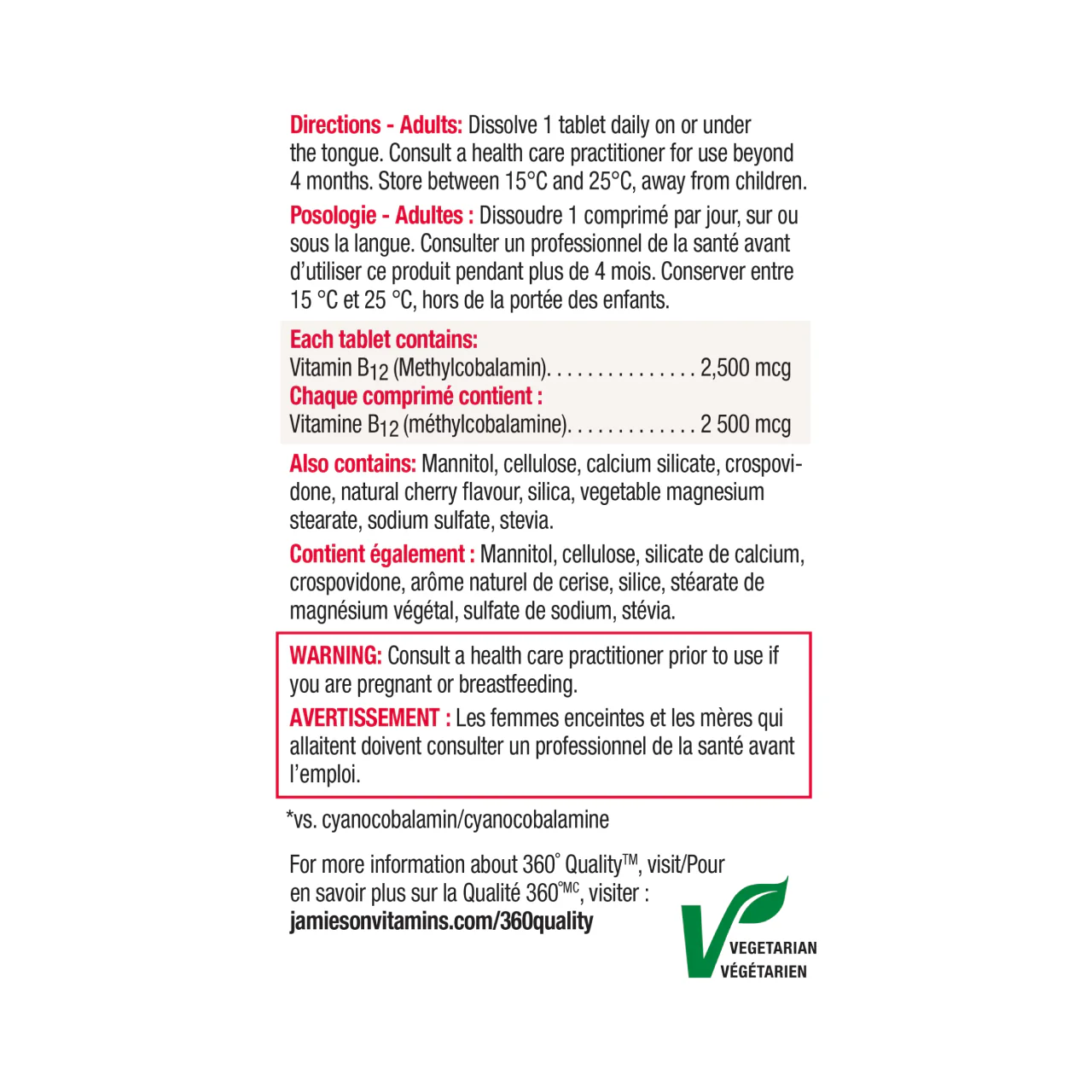 Jamieson B12 fast dissolving tablets are formulated exclusively with methylcobalamin, an advanced source of B12 that allows for faster absorption, so you can be naturally energized, faster!